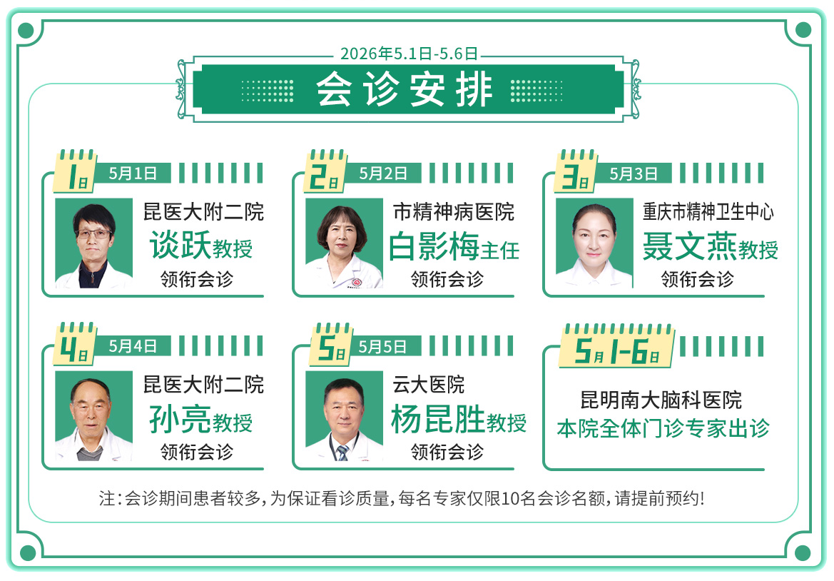 会诊地点:昆明南大脑科医院(昆明市黑林铺滇缅大道西段2696号)